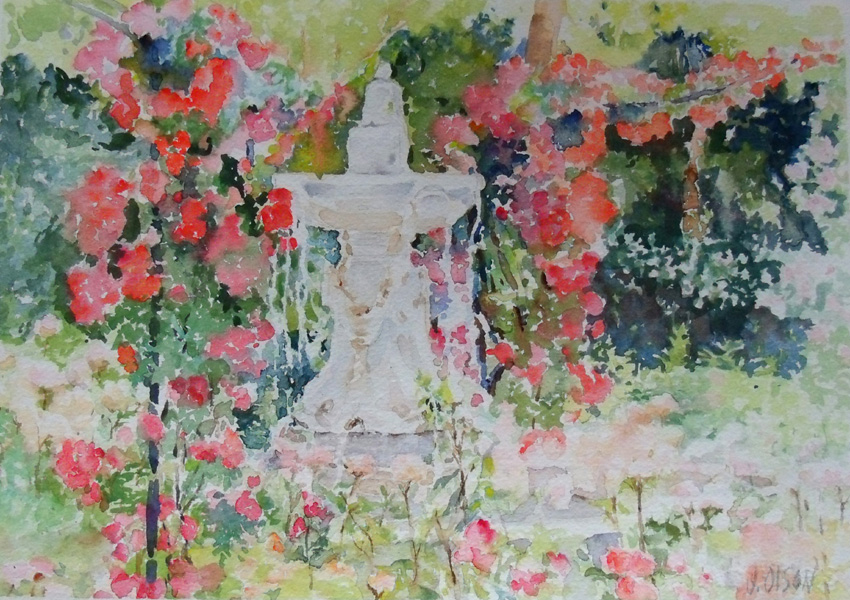 There are only two fountains with figures in the Rose Garden, so I paint the same figures over and over again. I just love to paint them.