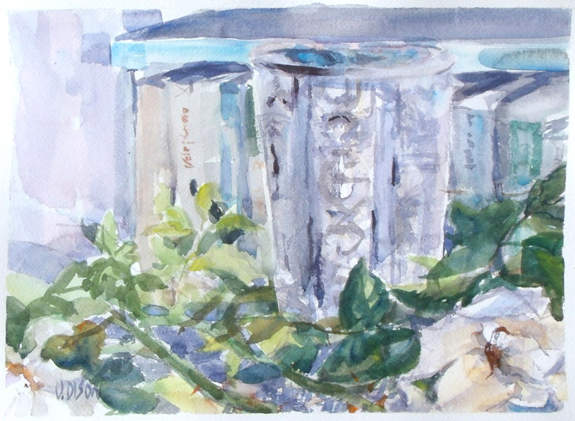 Then I started drawing the crystal vase with a paintbrush, the same way I drew the rose.