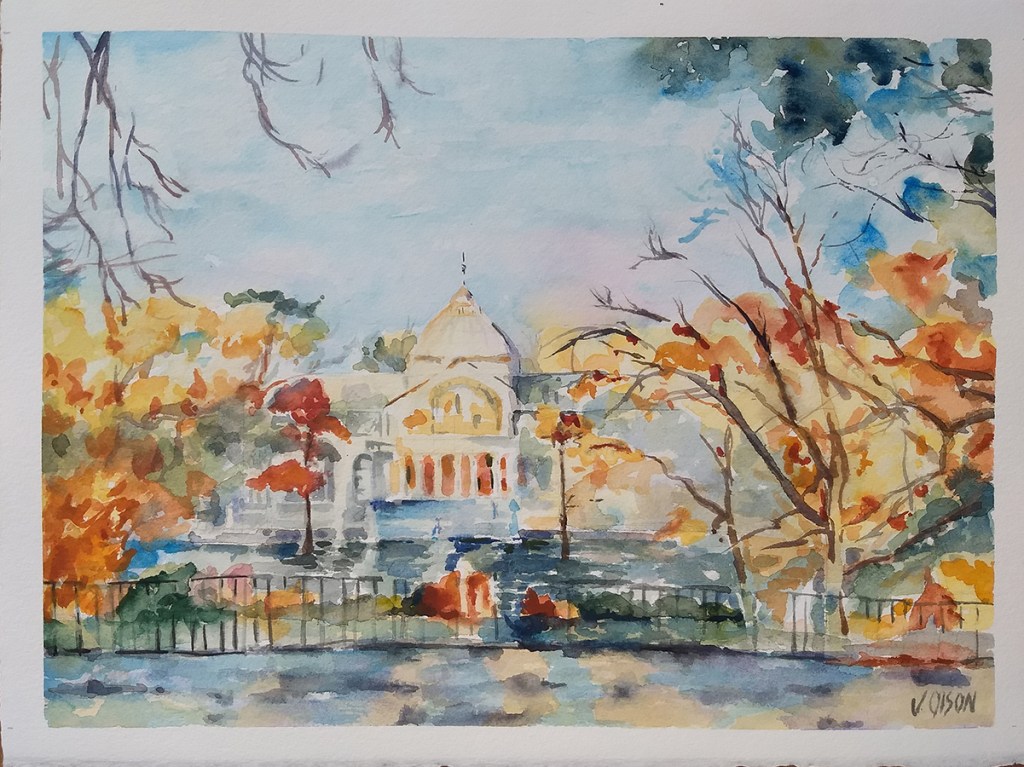 Everybody goes to see the Crystal Palace in November because even though it was freezing cold the day I was painting outdoors, I would almost say that this area crowded. I was painting in the area for two weeks and the colors were amazing. The leaves really looked like gold at times. This studio painting…