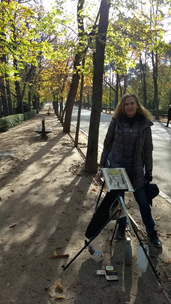 The different shades of green and ocher are amazingly beautiful. Retiro Park is a painter’s paradise. I have a short video of the watercolor below. Click here to see it.