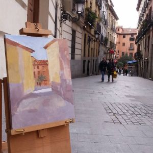 As I said before, I was stopped in my tracks in March 2020, unable to finish this painting of Plaza Conde de Barajas. I decided to leave it unfinished.