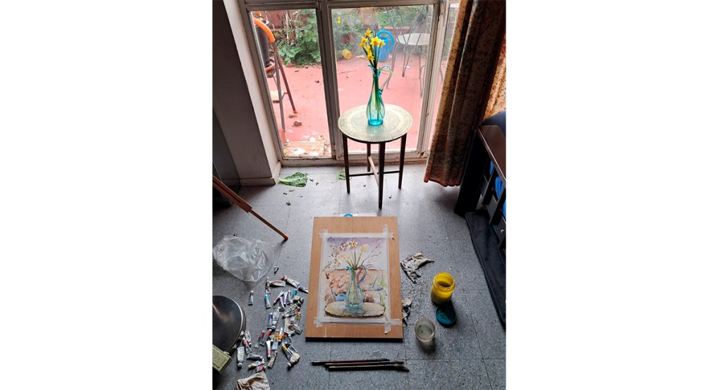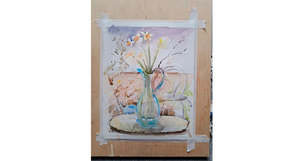 I didn’t want to cut them, but I did it anyway. I put them in one of my favorite glass pichers and painted them. The flowers didn’t turn out exactly how I wanted but that’s the beauty of watercolor, it doesn’t have to.
