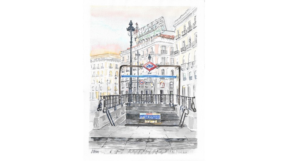 La Puerta del Sol is so beautiful in the early morning. I will be bringing this watercolor to my stand tomorrow at the Plaza de los Pintores. Have a lovely day.