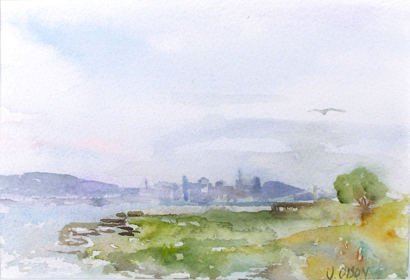Alameda Bay View of San Francisco, California 2010 Watercolor on Arches 300 gsm – Matted in 8×10 inch Museum Board – (20.3×25.4cm) $85