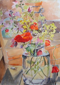 Red Poppies with Wild Flowers in Glass Jar April 2015